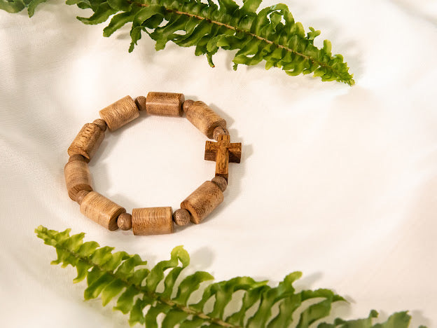 Agardwood Bracelet in Bamboo shape with Cross Charm 14mm (BL8)