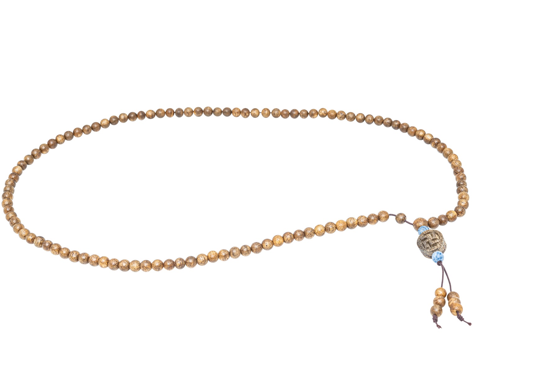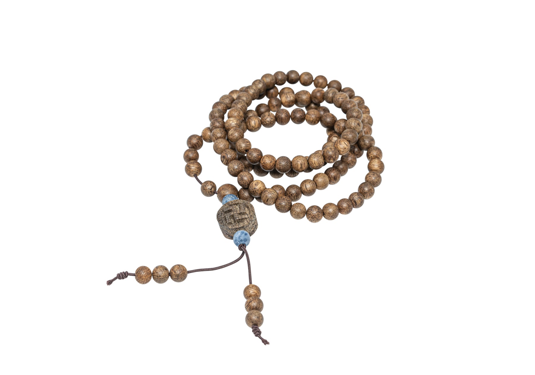 Agarwood Necklace with Blue Coral and Swastika Charm (NL3)