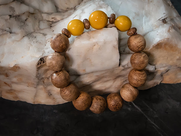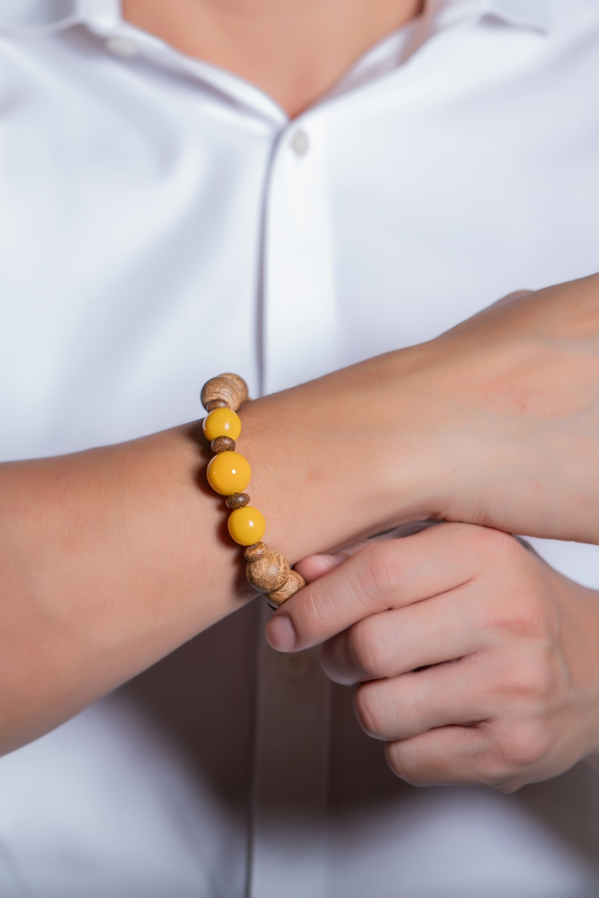 Argarwood Bracelet with Yellow Coral Natural Gemstone (BL1)