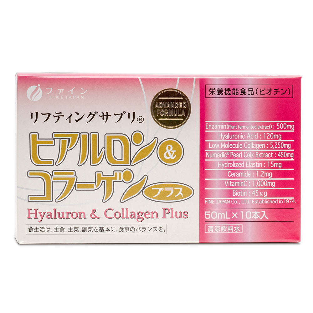 As the best-selling Collagen product in Japan, Hyaluron & Collagen Plus is the perfect combination of essential natural ingredients, including hydrolyzed collagen, vitamin C, hyaluronic acid, biotin, elastin and willow seed all combine to slow signs of aging and give moisture and radiance to your skin.